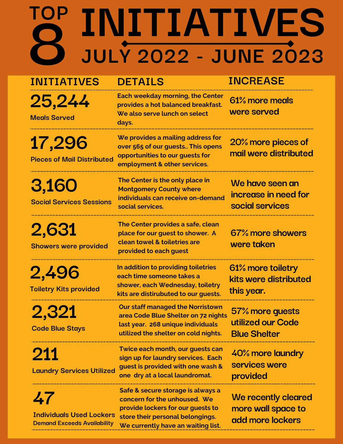 What a fruitful year of service it has been at the Center! We saw an increase in demand in all areas of our programs. We met this demand with an increase in staffing. Our collaborative work with organizations providing health services to the community was a highlight of our work. We know that improved access to health resources, increases chances for better health outcomes for unhoused individuals.