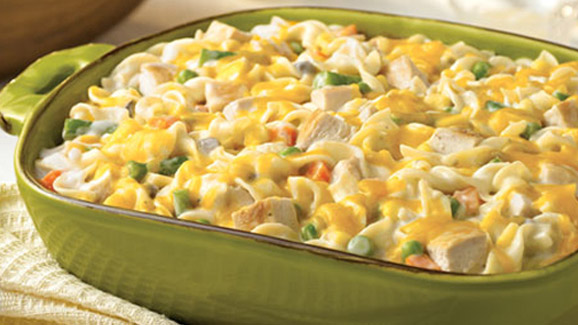 - 12 ounces (about 6 cups) medium egg noodles, cooked and drained